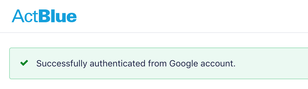 If you have a Gmail or Gmail-affiliated email address, you can log in to your ActBlue account without entering a new password – simply authenticate your account using Google.