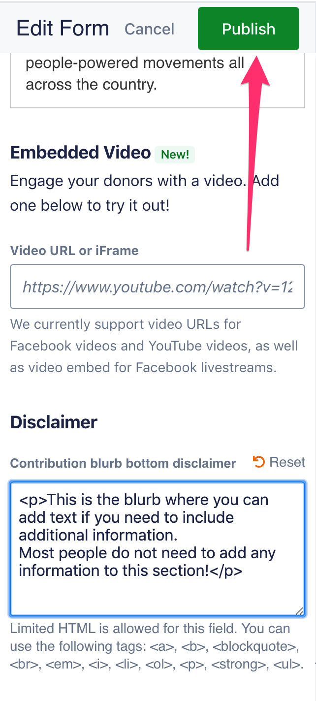 Check the form’s preview to ensure you formatted your customized contribution blurb correctly.