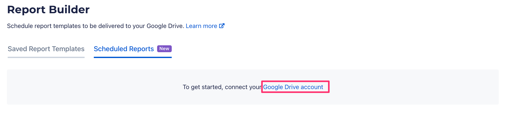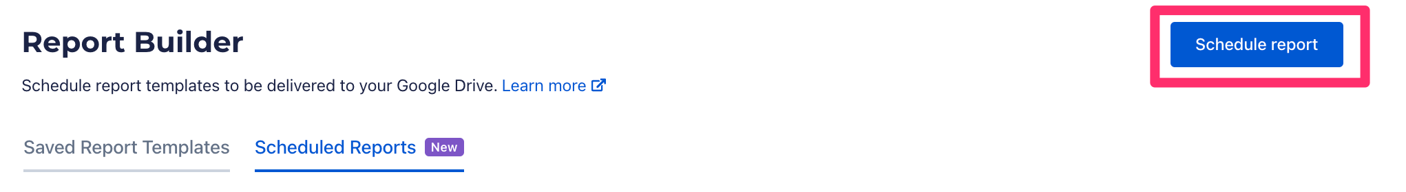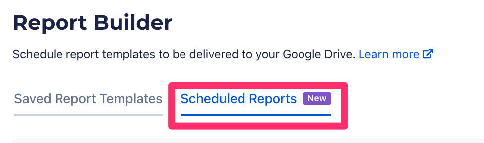 With the Scheduled Reports option, you can automatically send customized reports to your Google Drive at a cadence of your choosing.