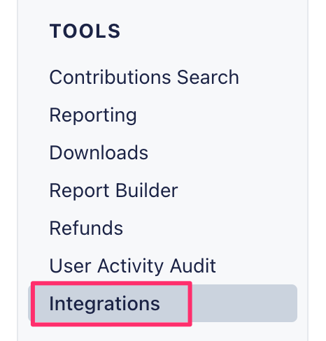 To get started, open up your campaign or organization's Dashboard and navigate to the Integrations tab under the Tools heading: