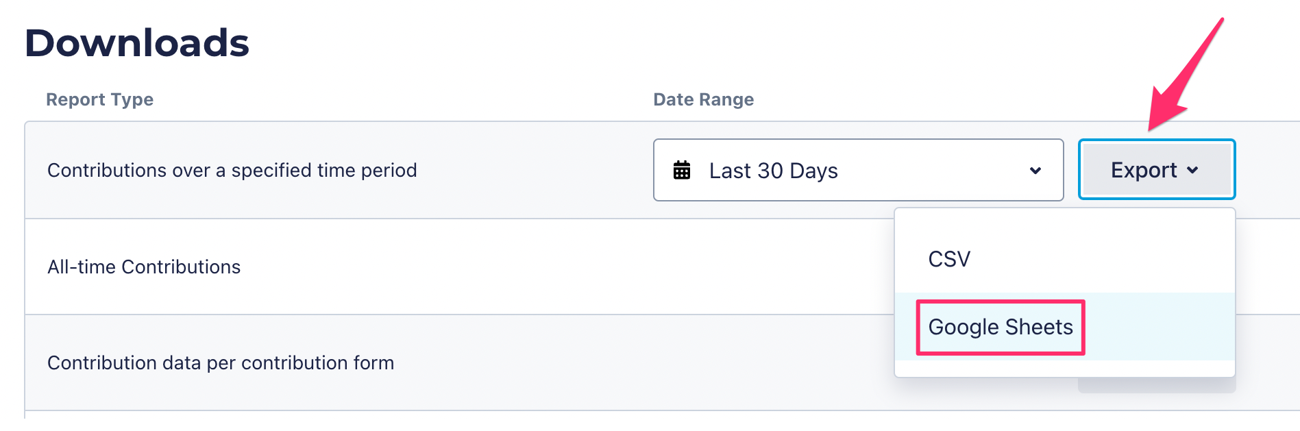 - Can I export my fundraising data directly to Google Sheets?