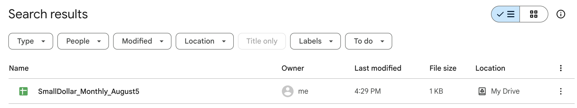 When your first report lands in Google Drive, you can find it in your main Drive folder as a Google Sheet. The report will automatically be titled in the following format: TemplateName_Frequency_Date.
