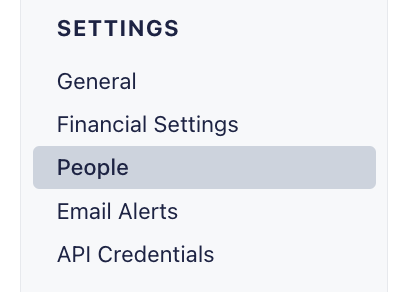 To edit the permissions that an existing user has, start by navigating to the People tab under the Settings heading on the left-hand menu: