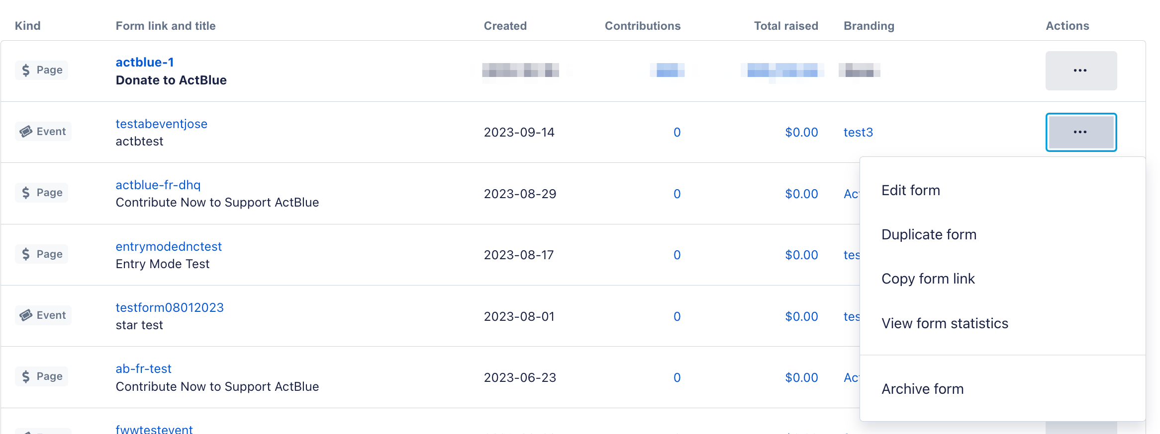 While contribution forms on ActBlue can't be permanently deleted, you can archive your forms so that they are no longer publicly visible or able to accept contributions.