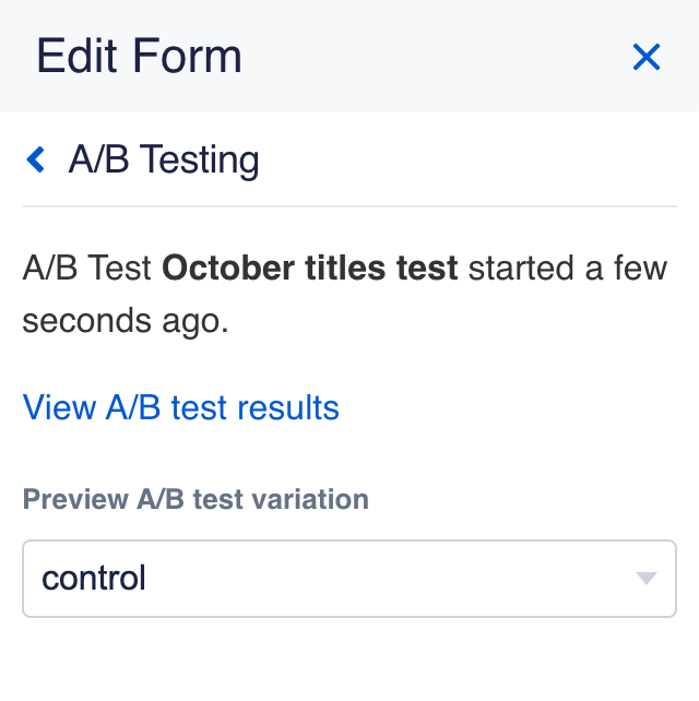 You can now view both variations of your form in the form editor. Go to the “A/B testing” tab and select which variation you want to see from the “Preview A/B test variation” dropdown menu.
