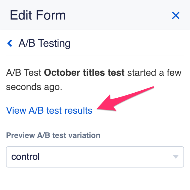 Once you create the test, you can track each variation’s progress by returning to the “A/B testing” tab of the form editor and following the link.