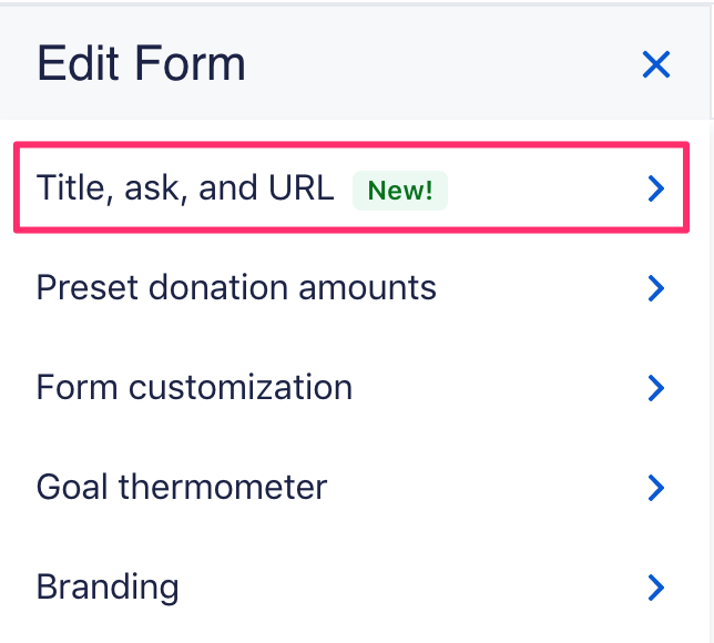 To embed a video or livestream on your form, click on the “Title, ask, and URL” tab of the form editor.