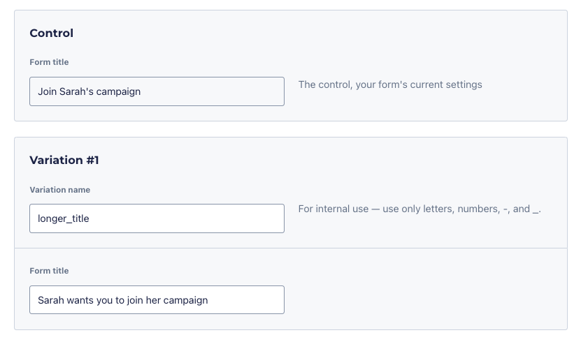 - ActBlue’s A/B testing tool encourages you to record your hypotheses and conclusions - writing down your assumptions and findings makes them easier to revisit down the road!