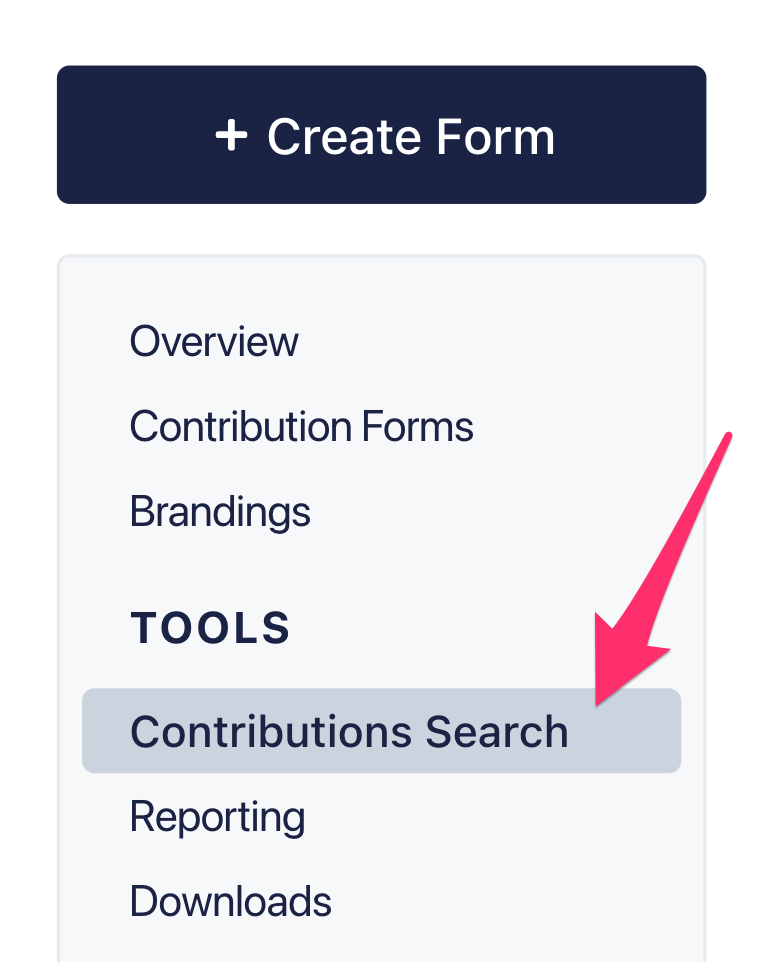 Use Contributions Search to verify a specific donor’s contribution, view a contribution’s details, issue a refund, or cancel a recurring donation. To access it, open your group’s Dashboard and select Contributions Search in the “Tools” section of the Dashboard toolbar.