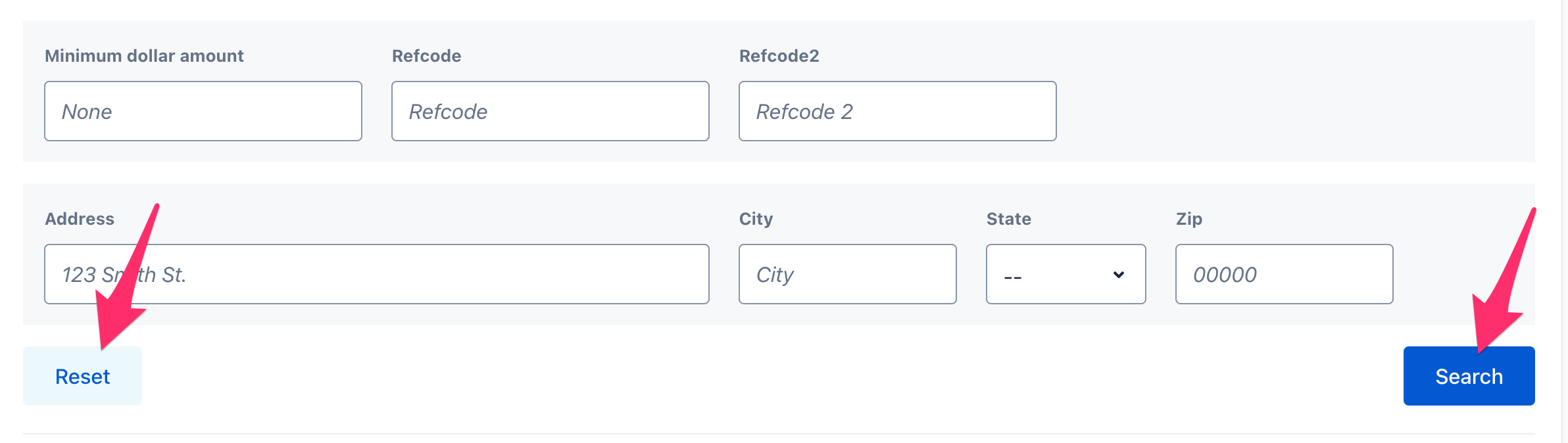 Fill in as many or as few fields as you’d like! It may be helpful to enter a few known characteristics to narrow down your search, but if you are unsure of the spelling of a donor’s name, for example, leave that field blank. Click 'search' to run your query or 'reset' to clear all search fields.