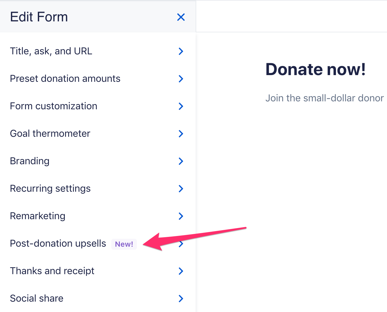 Click on the “Post-donation upsells” tab of your form editor.