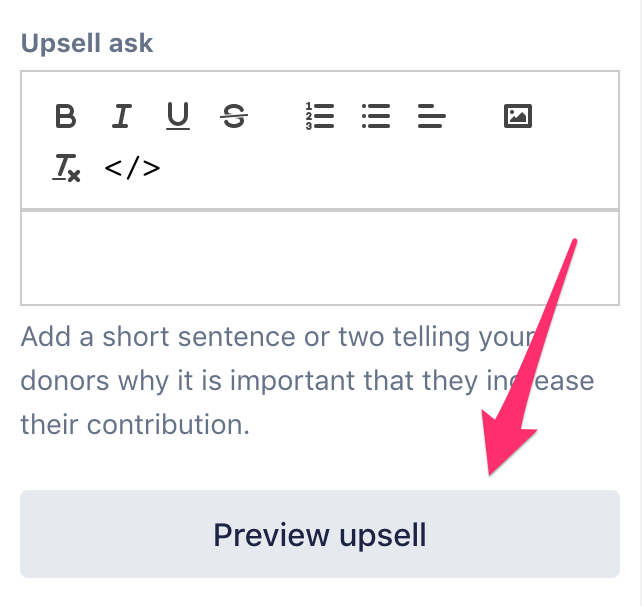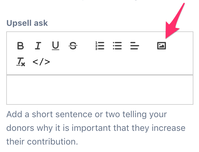 You can also add an image to your Smart Boost upsell by clicking the picture icon in the “Upsell ask” field! When picking images to use in your fundraising, keep image vetting and consent best practices in mind.