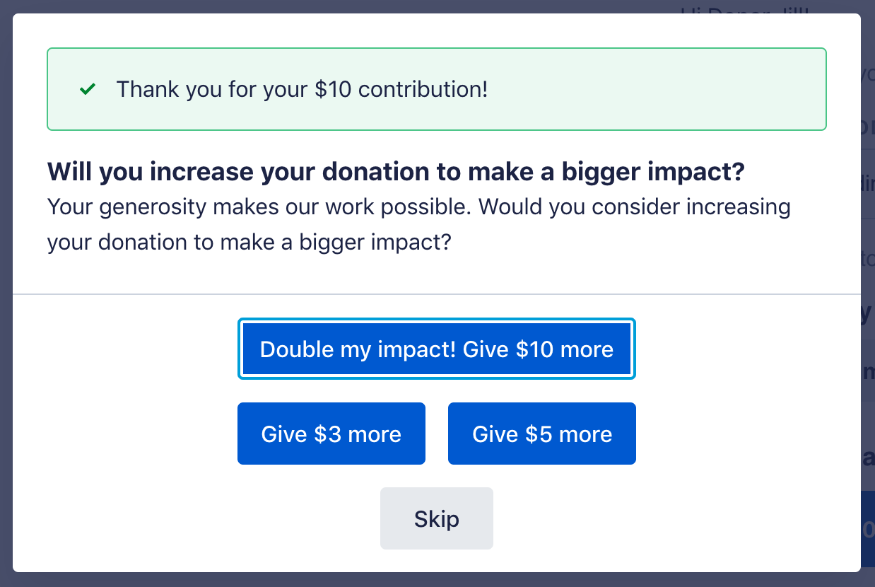 Here is an example of the upsell, with ActBlue’s default text:
