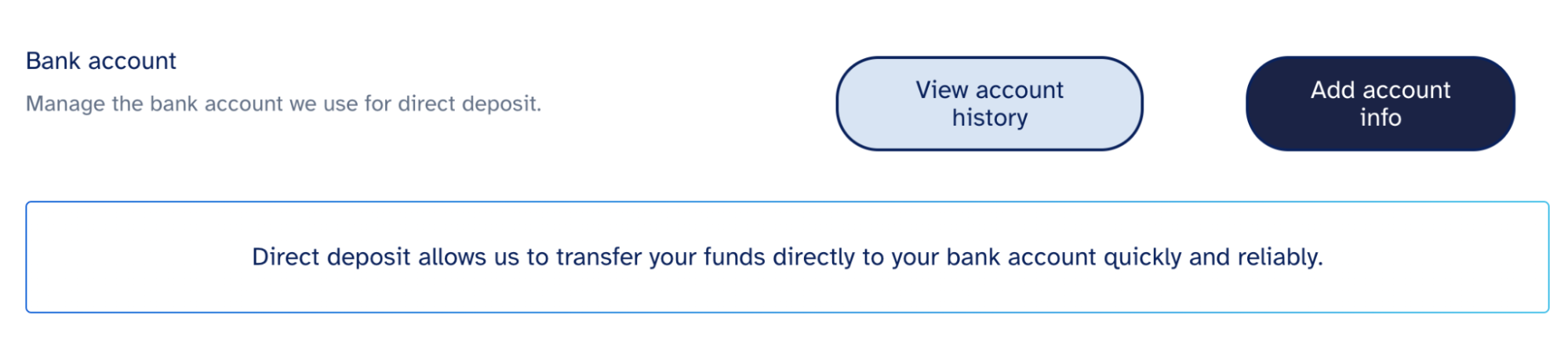 On the next page, click “Connect to bank account” and follow the prompts to connect to your banking institution. Once you’ve logged in and verified your account, you’re all set to receive direct deposit.
